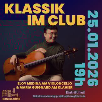 *Karten gibt es ausschließlich im Vorverkauf über die Honigfabrik. Bitte schickt hierfür eine Email an projekte@honigfabrik.de mit dem Betreff "Klassik im Club" und dem Datum der Veranstaltung, die ihr gerne besuchen möchtet. First come, first serve!