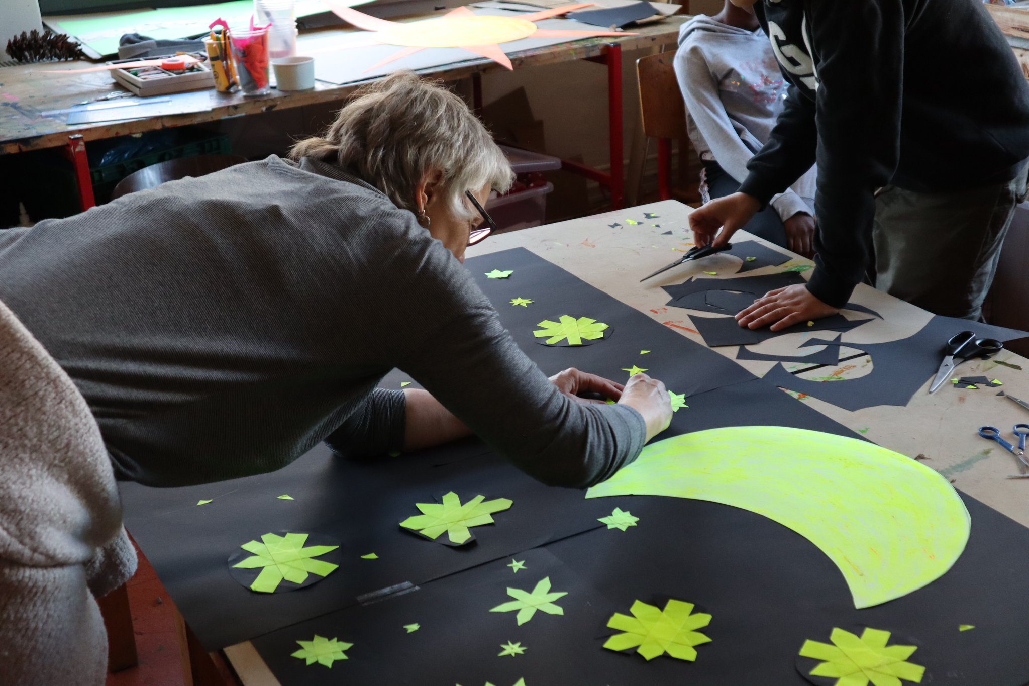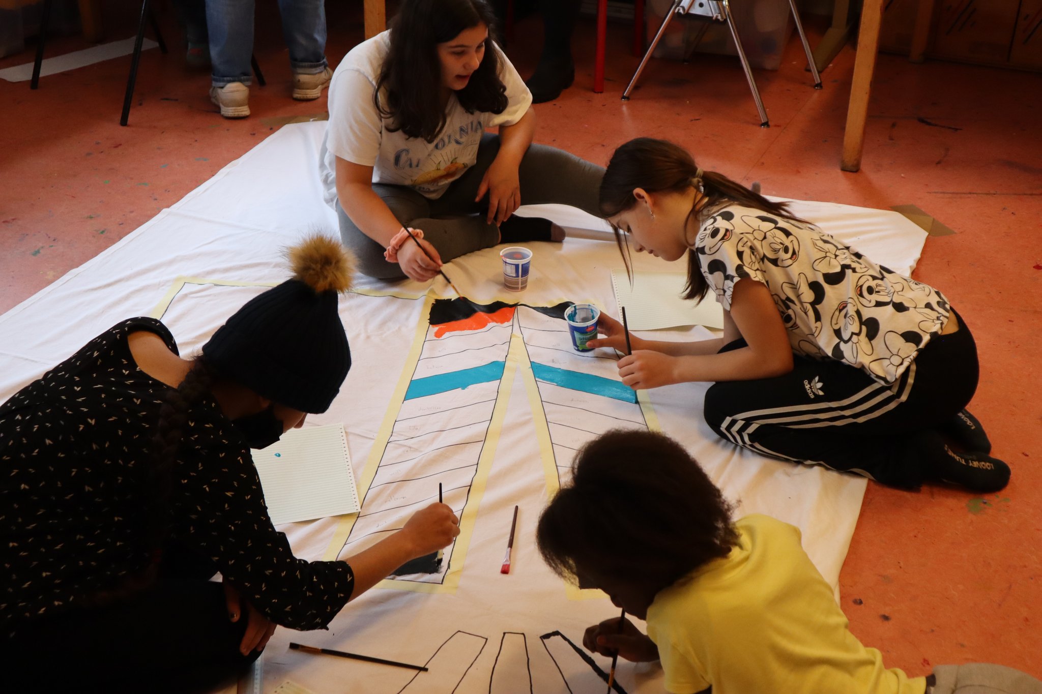 Am ersten Tag war Rotation angesagt. Die Kinder und Jugendlichen wurden in Gruppen aufgeteilt und konnten sich in jedem Bereich ausprobieren. Im Kunstraum wurde ein großes Banner vorbereitet, im Medienraum sich mit Programmen für Videoschnitt und Ton vertraut gemacht und im Spiegelsaal erste Minichoreographien geübt. Zum Ende des Tages stand noch die große Entscheidung an, in welchem Bereich die Kinder intensiv weiterarbeiten möchten.