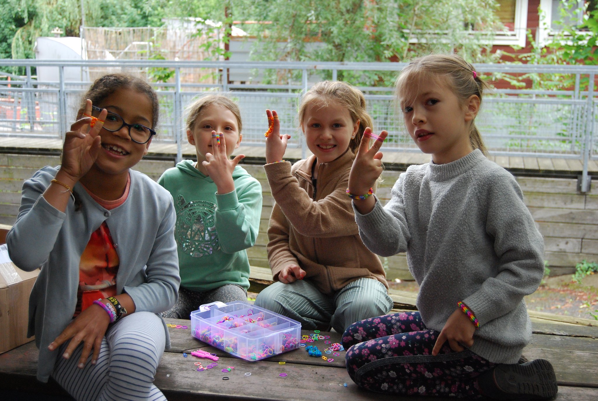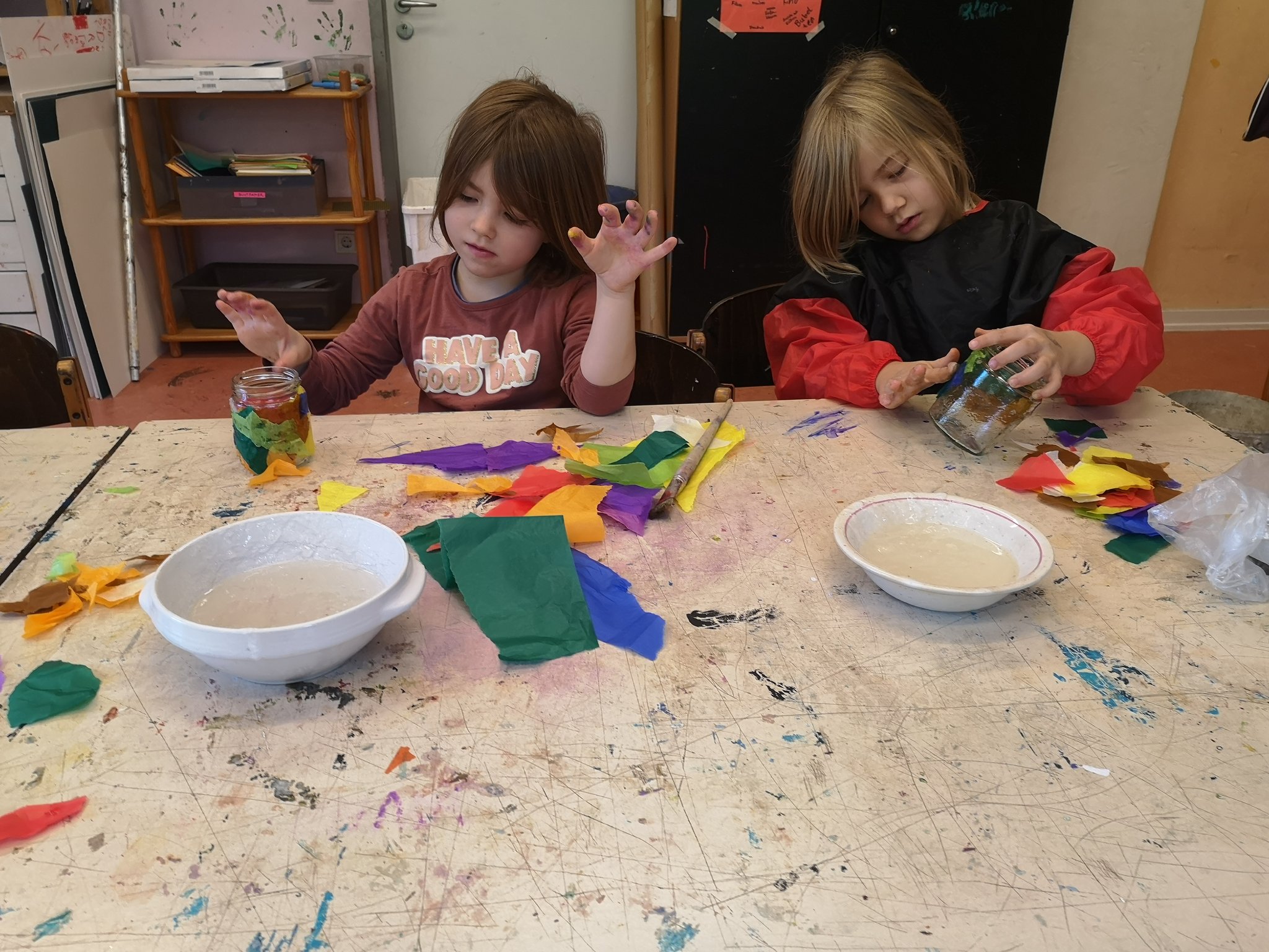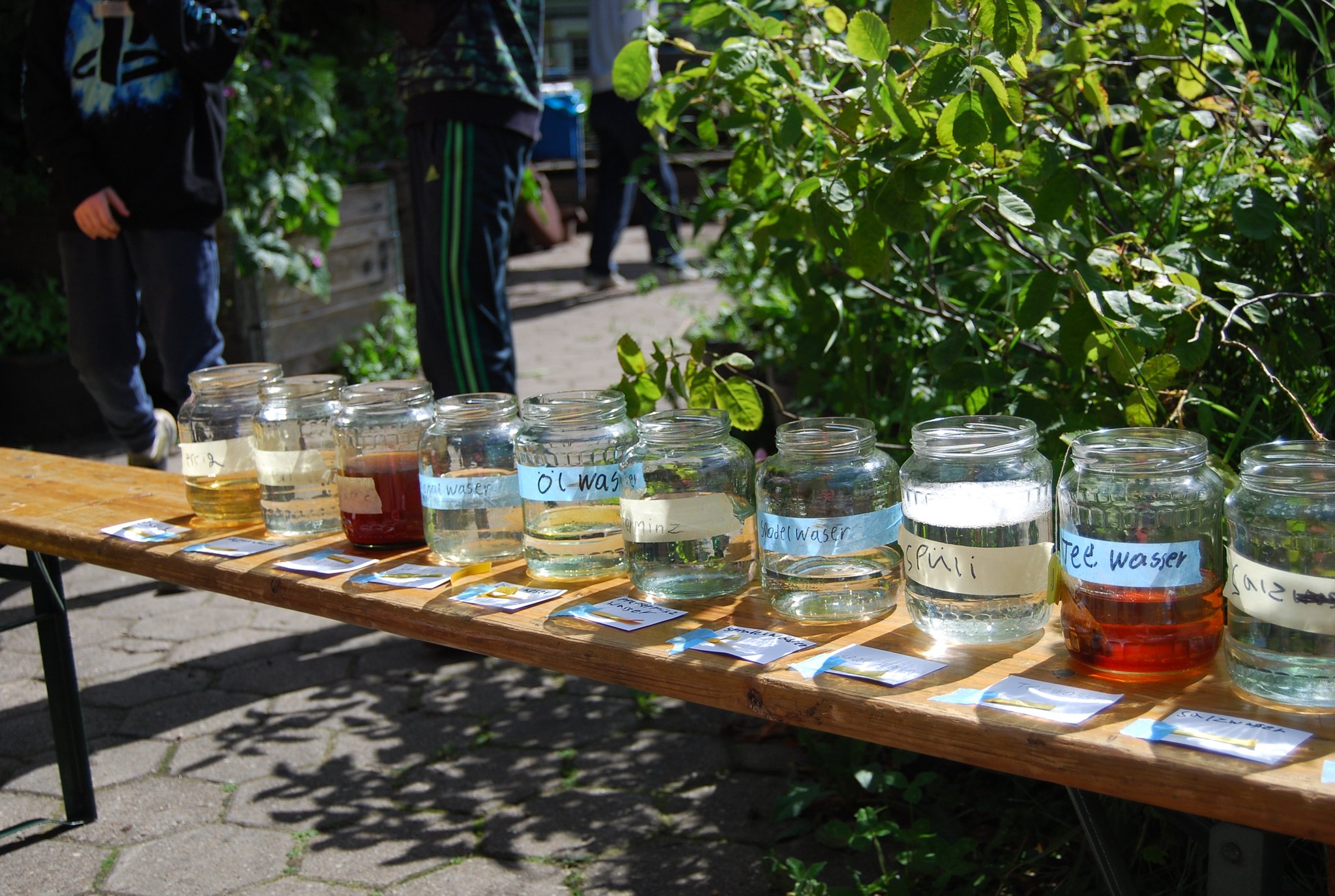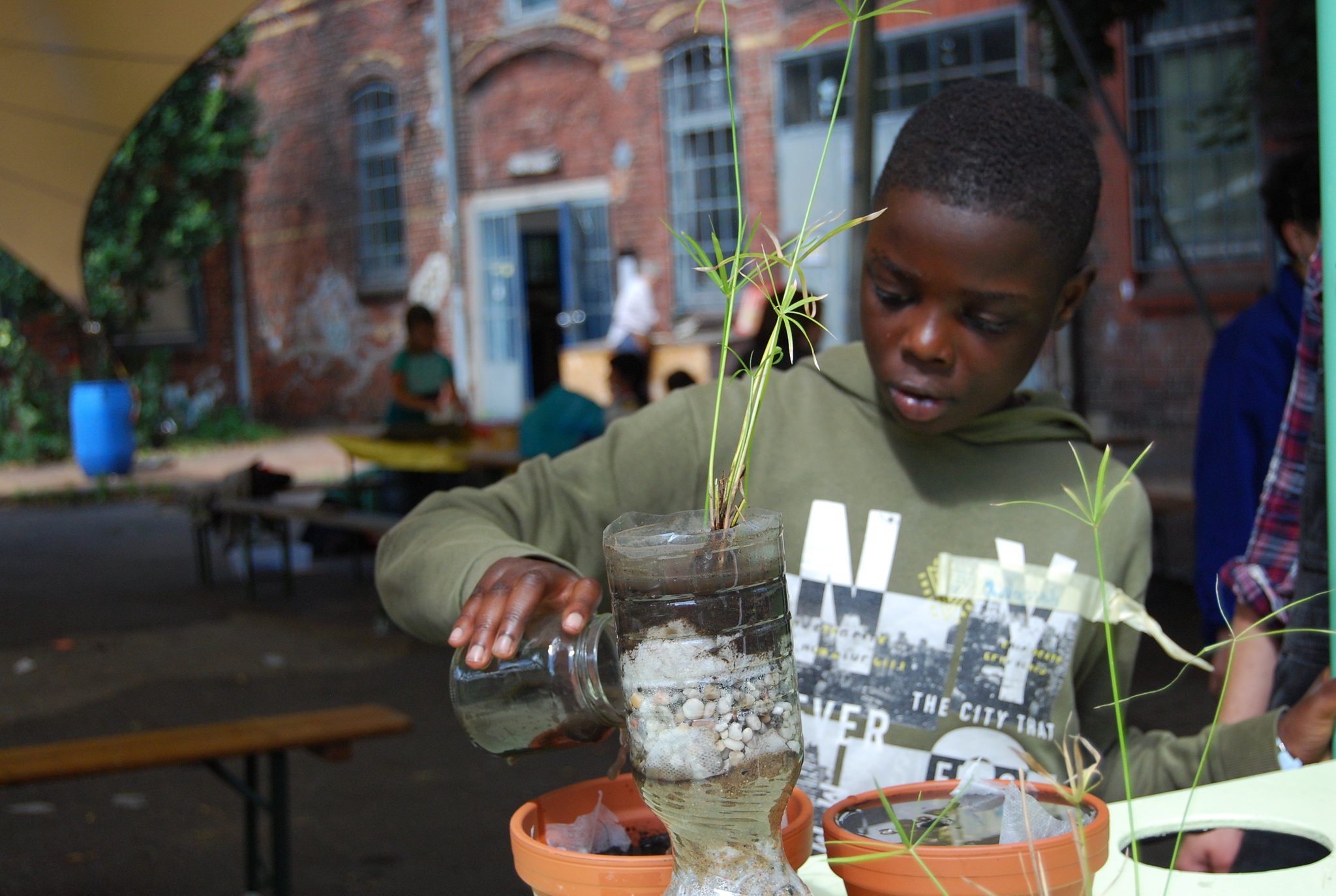 Das war mal eine bunte Sommerferien Kulturwoche im Hof! Es herrschte reges Treiben sobald man den Hof betrat. In der einen Ecke werkelten die Kinder an ihren Fantasiewesen, schraubten Hölzer aneinander geschraubt und malten rote Augen. In der anderen Ecke wurde mit Wasserfiltern experimentiert. Wer hat den besten Wasserfilter hergestellt? Wie wird das Wasser besonders sauber…? Und von vorne aus dem Garten erklang Musik, die auf den selbstgebauten Flairdrums gespielt wurde. Um den Schornstein herum wurden fleißig Loombänder geknüpft und Leuchtequallen hergestellt. Und das Ganze wurde von einen eifrigen Filmteam dokumentiert, welches immer und überall dabei war. Am Freitag kamen dann alle Freunde und Eltern, um die hergestellten Kunstwerke bei unserem Abschlussfest zu bestaunen.