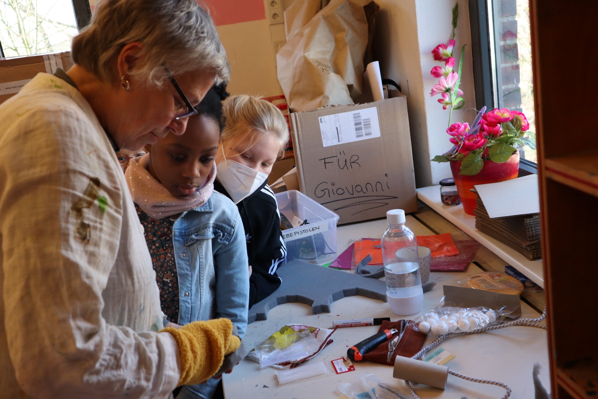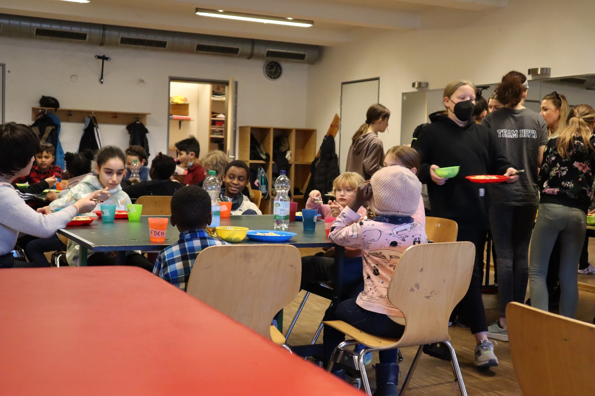Wir werfen mit voller Euphorie einen Rückblick auf eine Woche Märzferienprogramm „Ciak und Aktion“. Die Kunstgruppe mit Billie hat fleißig Handpuppen gebastelt und das Filmteam mit Kulissen ausgestattet. Die Video/Podcast-Gruppe mit Sylvie konnte dann damit Kurzfilme drehen und hat andere Kinder zu ihren Emotionen interviewt. Eine Frage, die wir uns gestellt haben war: Wo fühlen wir die Emotionen an unserem Körper? Und wodurch werden diese ausgelöst? Die Tanzgruppe mit Giovanni hat sich eine Geschichte mit Performance- und Tanzeinheiten überlegt und fleißig geprobt. Nach meist intensiver Arbeit am Vormittag gab es immer ein ausgiebiges Mittagessen mit leckerem Nachtisch. Die Mittagspause wurde genutzt, um die Sonne im Sanitaspark zu genießen und die ein oder andere Runde Fangen oder Verstecken zu spielen. Im April werden wir die gedrehten Videos zu einem Film zusammenschneiden, Kulissen werden ergänzt und die Liveperformance wird geprobt und finalisiert. Ihr könnt gespannt bleiben und euch auf die große Vorstellung am 28. Mai freuen.