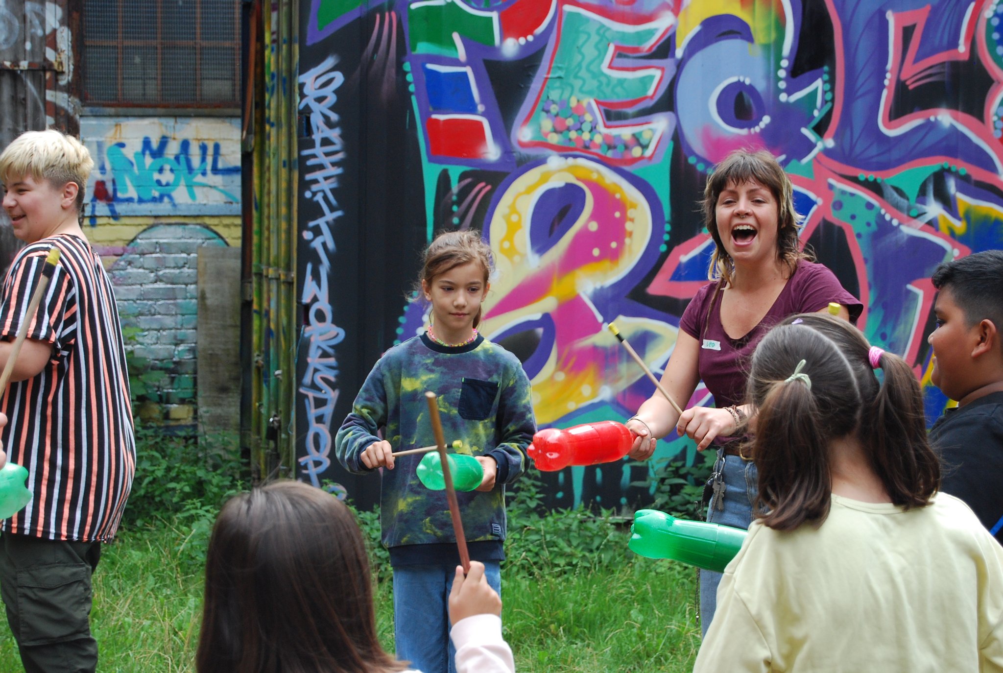 Mit bis zu 40 Kindern in drei kreativen und sportlichen Workshops sind wir dieses Jahr in unser Ferienprogramm gestartet! Während der Bewegungs-Workshop Baseball und Skaten trainierte, entwickelte die Theater-Gruppe ein Stück unter dem Motto: Improvisation und „Kinder Macht“.