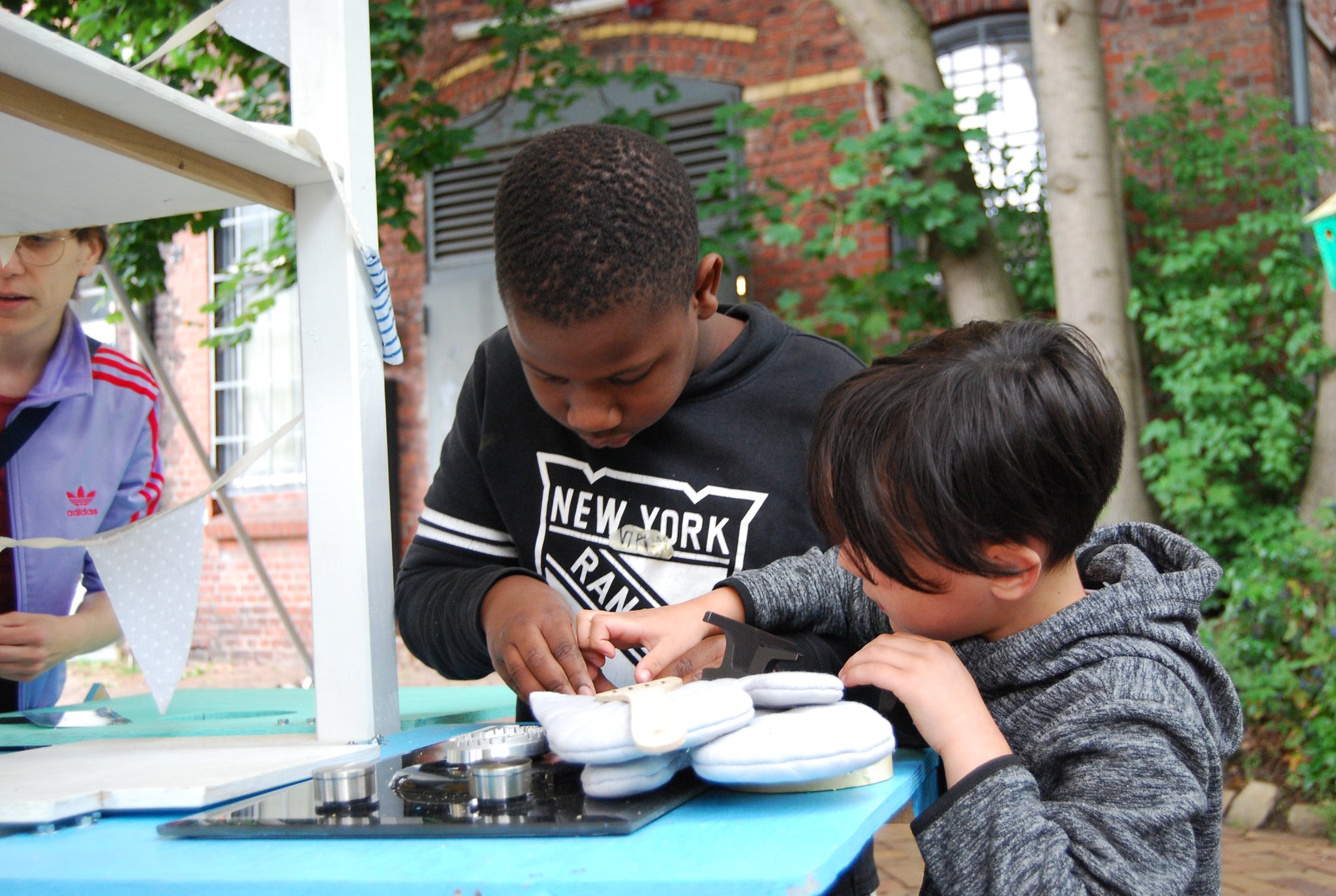 Und die Klangforscher haben aus Tönen aus dem Stadtteil, Songs kreiert. Zum krönenden Abschluss der Woche stellten am Freitag alle Projekte ihre Ergebnisse Freunden und Eltern vor.