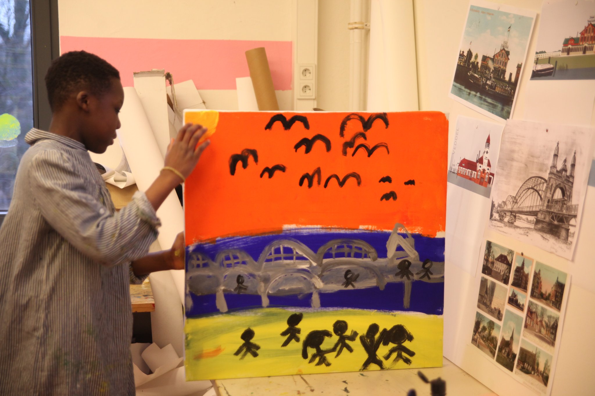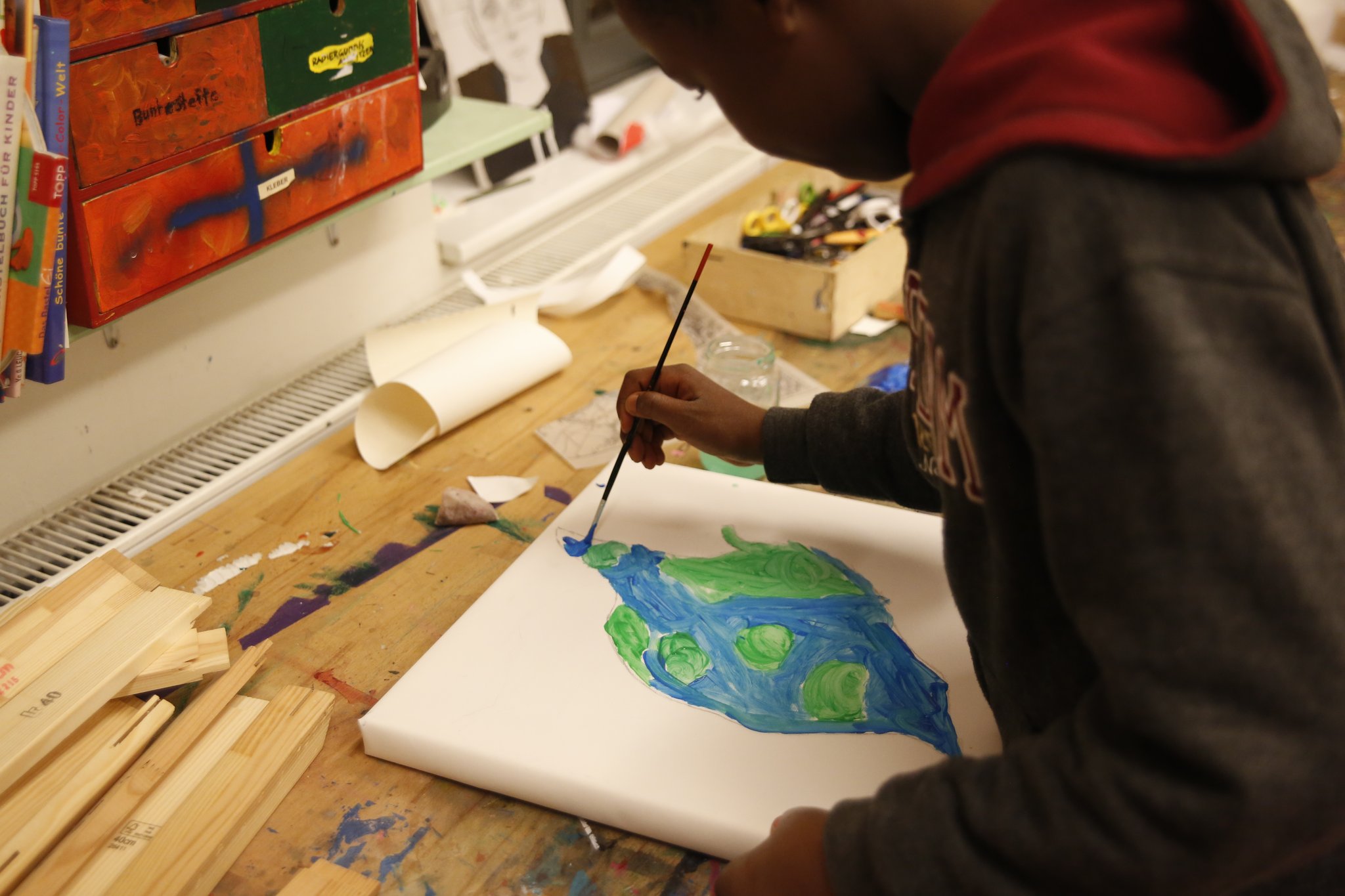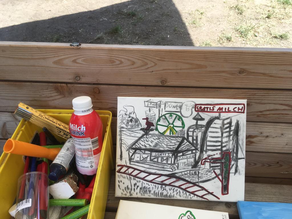 Die Idee zu "create a city" stammt von den Jugendlichen des Kunstkurses. Unterstützt wurden die jungen Künstler*innen hier von der professionellen Künstlerin Jamie Jane. Wichtig ist hierbei den Kindern Freiraum zu geben, denn dies ist die einzige Möglichkeit zur Entfaltung eigener Kräfte und kreativer Ideen.