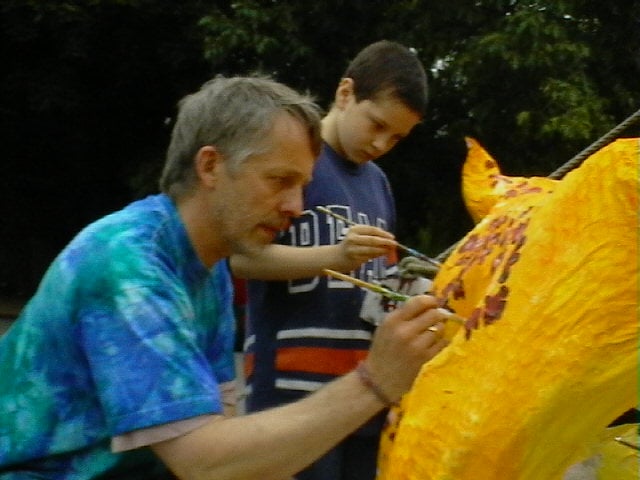 Und im Zirkuszelt auf dem Hof wurden nach einem Besuch im zoologischen Museum und im Hagenbecks Tierpark nach den dort angefertigten Zeichnungen Tiere hergestellt. Aus Draht und Pappmaché entstanden die verschiedensten Skulpturen. Das Goldstück der Gruppe war dann am ende ein in Lebensgröße angefertigter Leopard auf dem man sogar reiten kann.