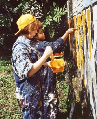 Die Kinder der Workshop-Gruppe Malerei mussten sich in der ersten Woche damit abmühen die Wand der Honigfabrik erst einmal weiß zu malen. Nachdem sie am Ende der Woche im Völkerkundemuseum waren war klar auf die Mauer müssen Köpfe. Nun ziert die Mauer große, kleine, dicke, dünne, hübsche und hässliche Köpfe.