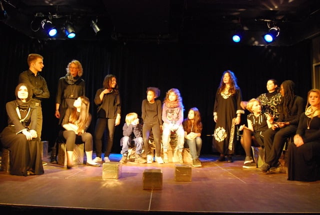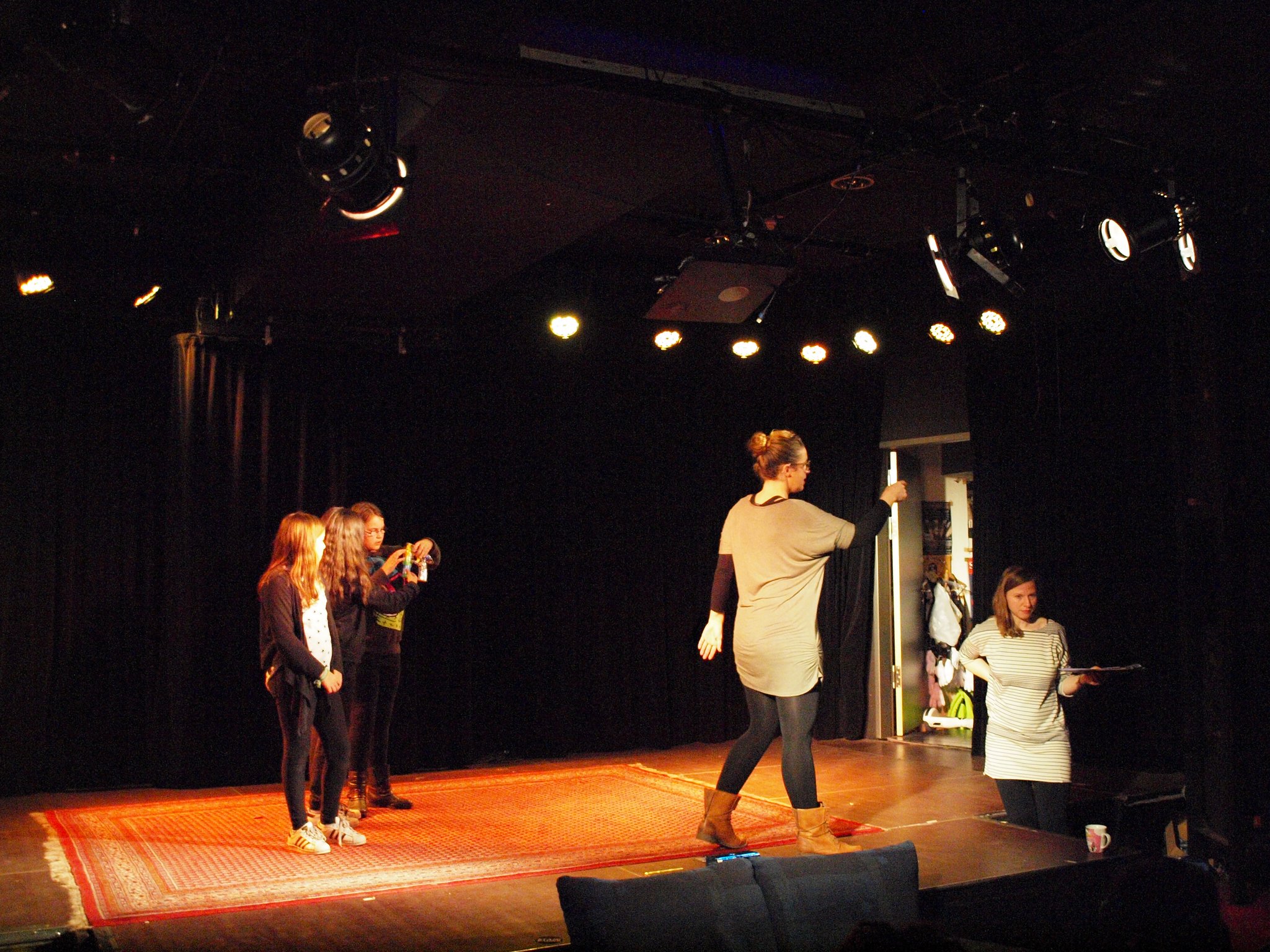 Also: Es war einmal eine Kooperation zwischen der Ganztagsschule Fährstraße und dem Kulturzentrum Honigfabrik e.V. Die wollten zusammen mit der Theaterpädagogin Sandra Kiefer und vielen Kindern, die bis dahin wenig oder nichts mit Theater zu tun hatten, ein Musik-Tanz-Theater entwickeln, das Geschichten aus aller Welt erzählt. Es war viel harte Arbeit, aber am Ende waren alle sehr stolz auf ihre erste Produktion. Dann kam die Schulreform und zerstreute sie in alle Richtungen. Aber der harte Kern gab nicht auf. Die frisch gegründete Theatergruppe von 9 Jugendlichen im Alter zwischen 13 und 16 Jahren, beschloss das Stück: „Die Tochter des Ganovenkönigs“ selbst zu inszenieren. Es ist ein modernes Märchen und es beginnt ganz im Stil der Geschichten-Erzähler:
