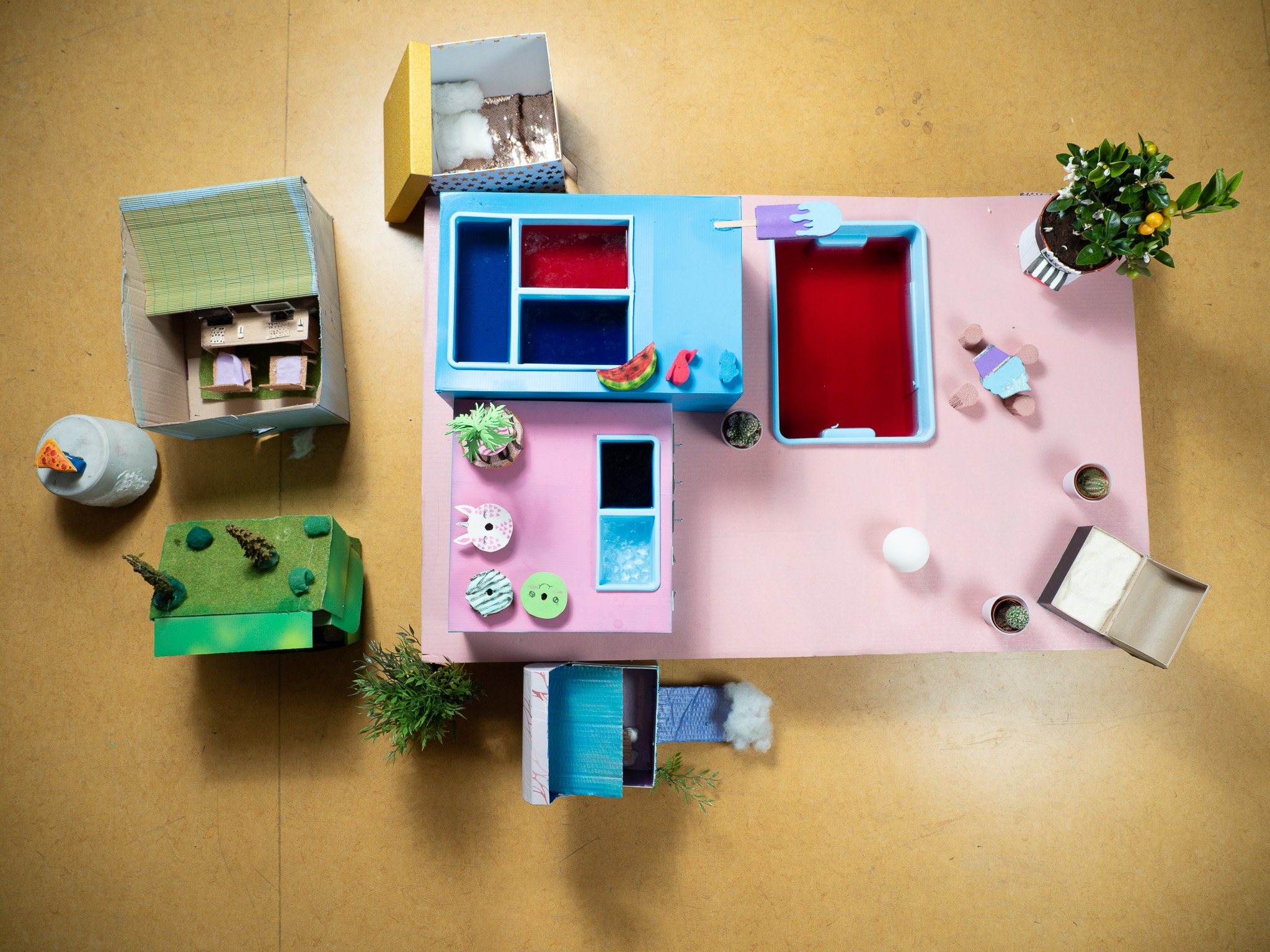 An Ideen für eine kreative Stadt mangelte es nicht: Straßen werden zu Trampoline, Häuser sind gleichzeitig Sprungtürme für das riesen Schwimmbecken, das über Kanäle mit allen Stadtteilen verbunden ist und der Erdbeerkiosk hat ein Gründach auf dem eine Disco veranstaltet wird.
