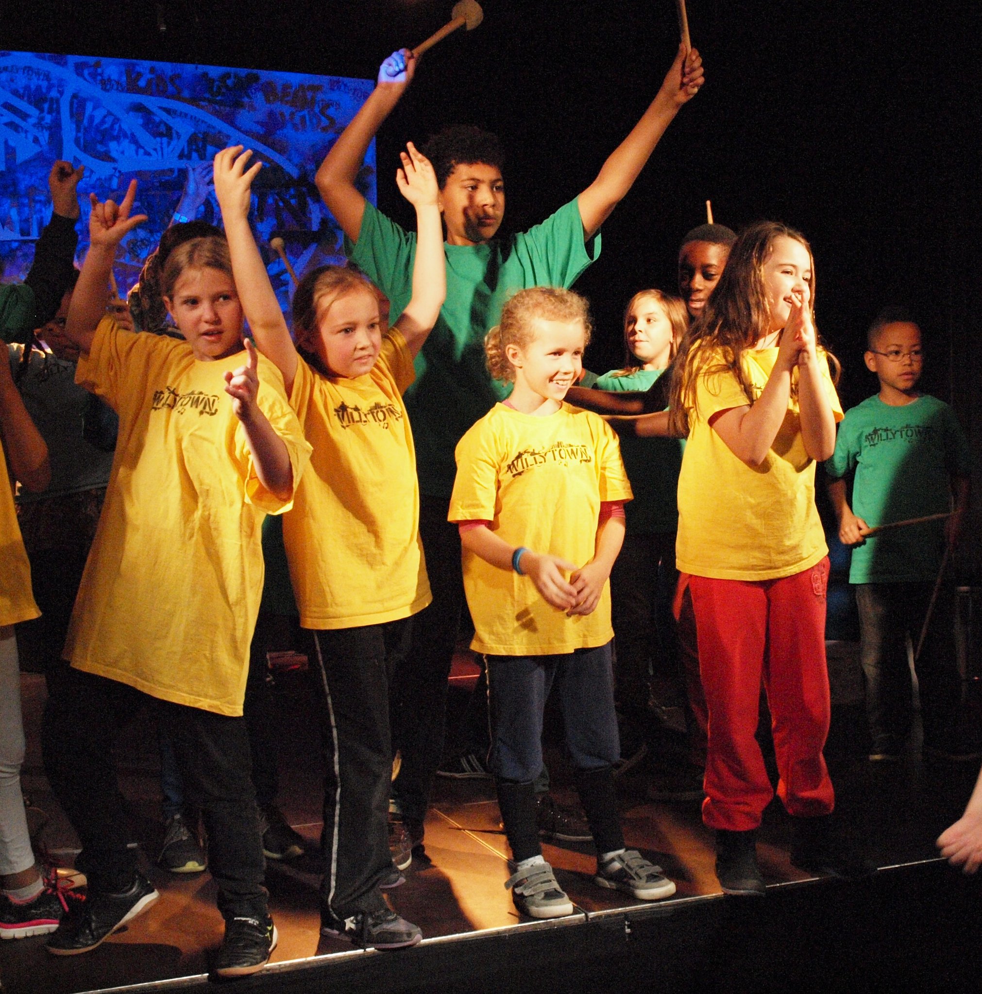 Im November 2014 war es soweit und die Kinder präsentierten ihre Ergebnisse auf der Bühne. Genau wie die Willytown-Kids selbst, war die Aufführung fröhlich, laut und bunt.