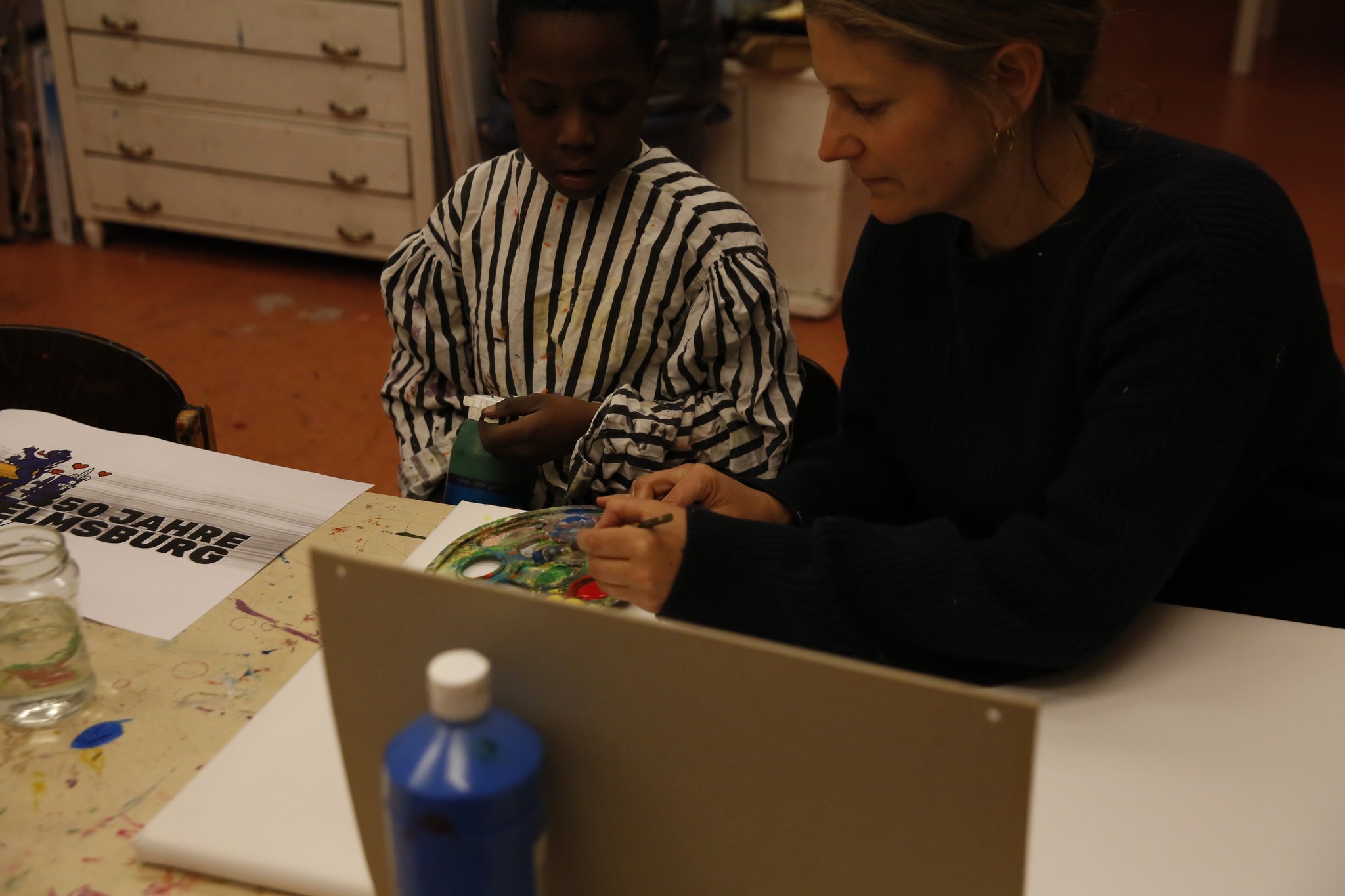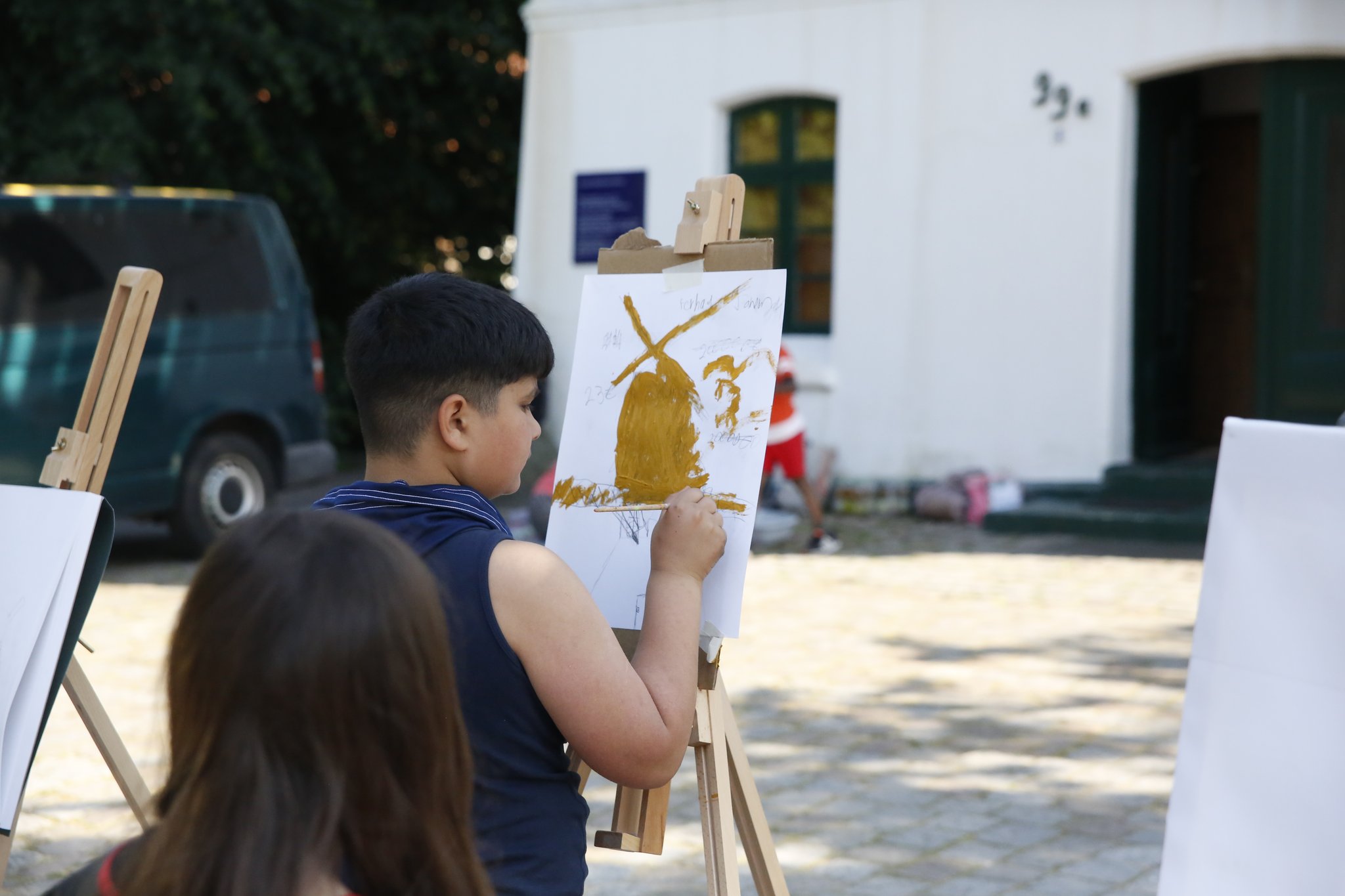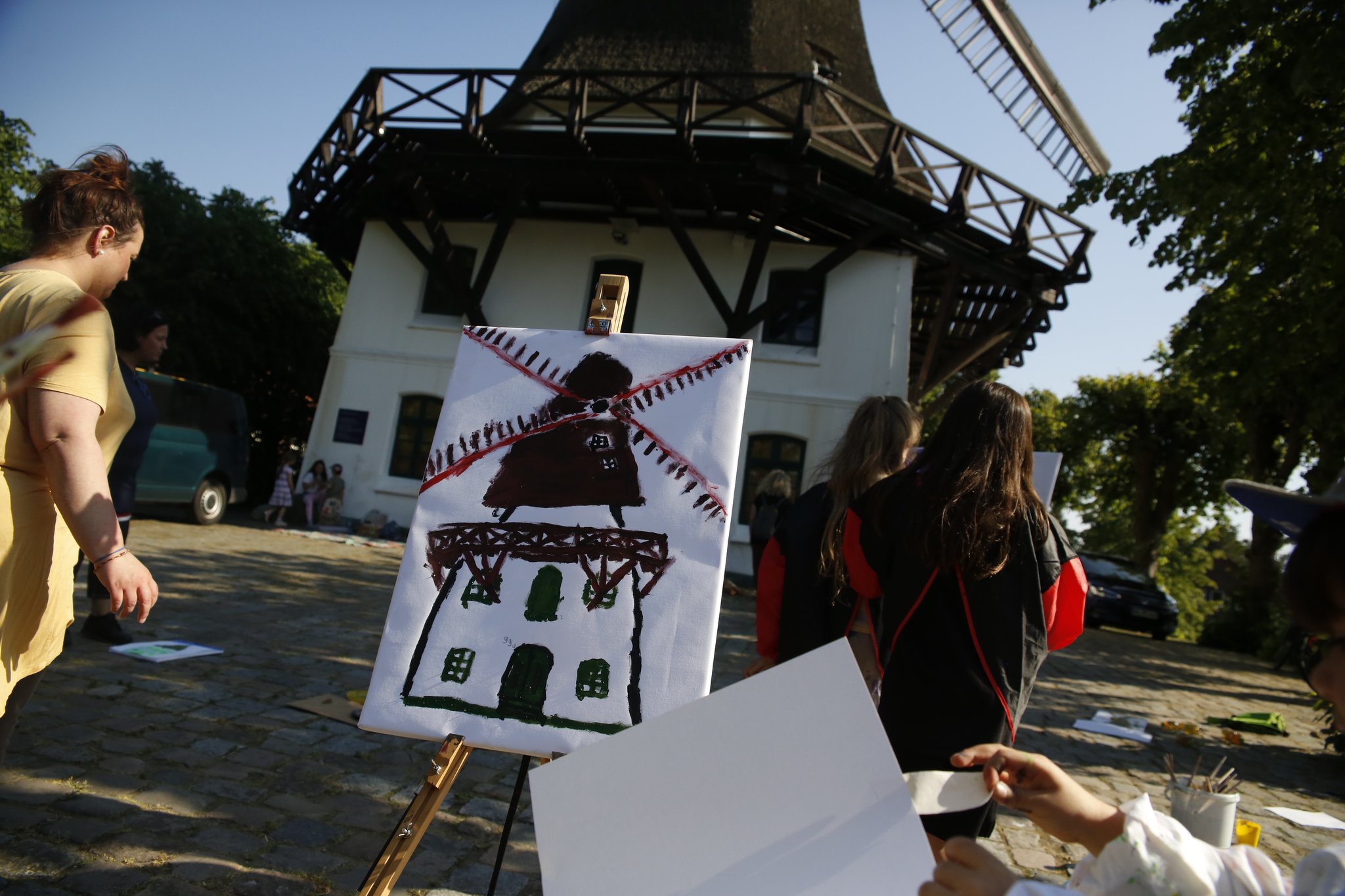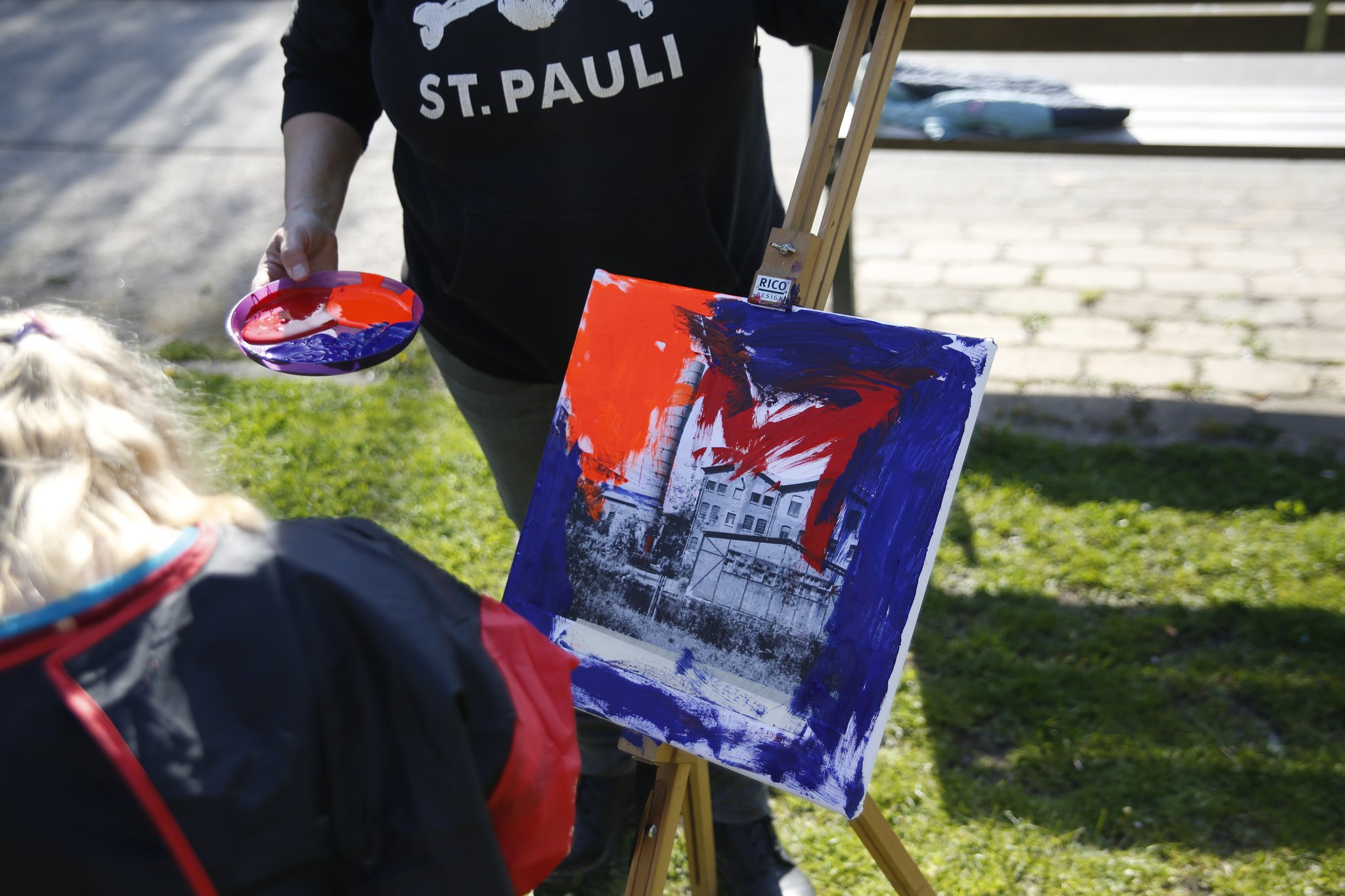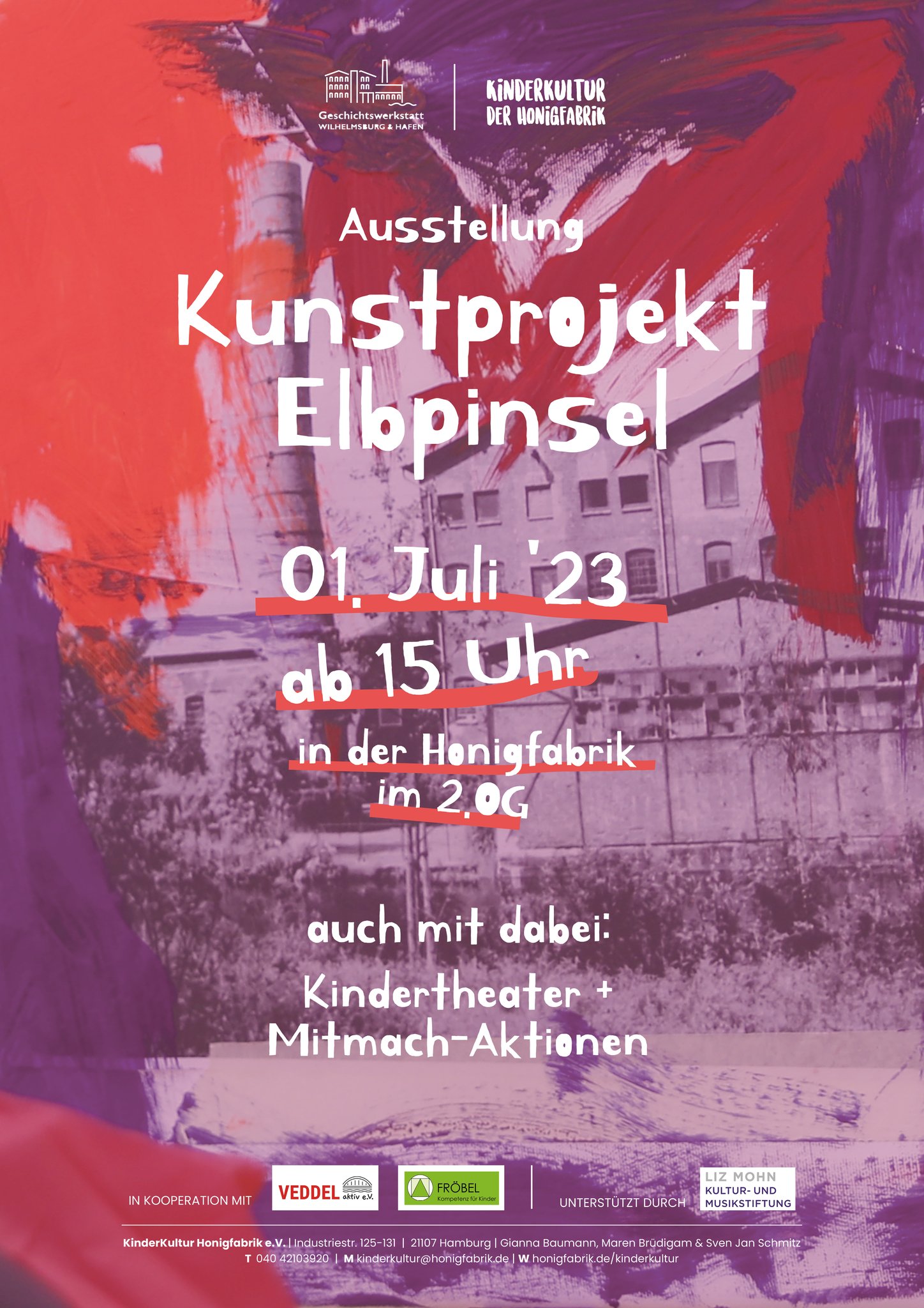 Das Kunstprojekt „Elbpinsel“ ist eine interne Kooperation der Kinderkultur und der Geschichtswerkstatt Wilhelmsburg & Hafen. Hier treffen sich die Kinder wöchentlich und malen Bilder mit Motiven aus Wilhelmsburg, wobei die Kinder viele Inspirationen wie alte Karten oder Fotos von Wilhelmsburg aus dem Archiv der Geschichtswerkstatt nutzen können. Auch die Honigfabrik war bereits Teil im Gestaltungsprozess der Elbinselmotive. Besucht wurden von den Kindern selbst ausgewählte Orte in ihrer direkten Umgebung wie die Windmühle oder den Leuchtturm an der Bunthäuser Spitze. Mit einer Staffelei, Farbe und Pinsel ausgestattet können sie die Szenerie so abbilden, wie sie sie sehen oder sehen möchten. Zusätzlich lernen die Kinder das Verfahren der Cyanotypie, auch „Sonnendruck“ genannt, kennen und gestalten ihre eigenen Blaudrucke. Die Comic-Gruppe Veddel Aktiv e.V. zeigt Ihre Arbeiten und wird ein Heft mit ihren Arbeiten drucken lassen welche es zu bestaunen gilt. Auch die ganz“ kleinen Künstler“ aus der FRÖBEL Kita Industriestaße zeigen ihr Musik-Projekt im Stadtraum und um 15.30 zeigen Sie das Theaterstück "Der gestiefelte Kater". Um 16.30 Uhr gibt es im Garten der Honigfabrik Trommeln mit Bakary Jatta – alle dürfen mitmachen! Parallel gibt es ab 15 Uhr im kleinen Garten der Honigfabrik verschiedene Mitmach-Aktionen Kaffee und Kuchen. Wir freuen uns besonders über die Zusammenarbeit der verschiedenen Institutionen und hoffen so auch eine bessere Sichtbarkeit und Vernetzung unseres Stadtteils mitzugestalten.