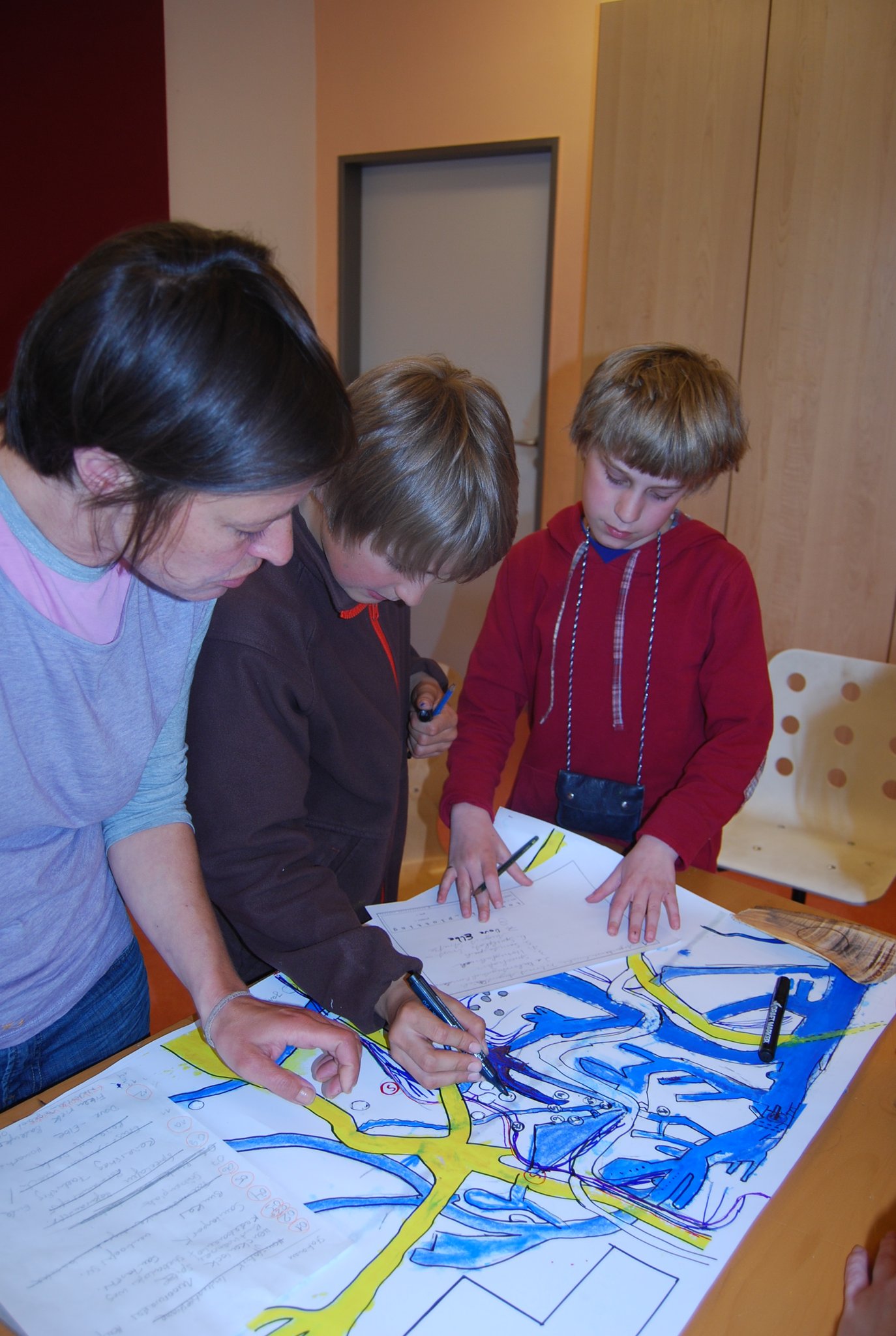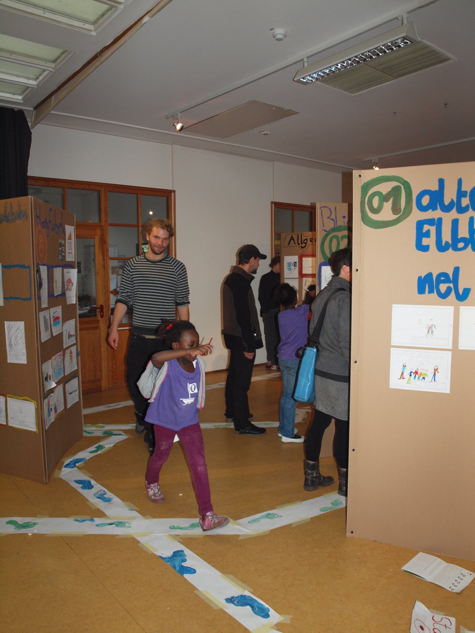 Aber wie sieht unser Stadtteil eigentlich aus der Sicht der Kinder und Jugendlichen aus, die hier leben??? Dieses Geheimnis wurde von uns in einer Ausstellung am Mittwoch, den 25.09.2013 gelüftet. Fußspuren führten die kleinen und großen Besucher durch die Ausstellung und sie konnten so schon mal der ausgearbeiteten Rute der Kids durch Wilhelmsburg folgen. Die Stimmung war super und man bekam richtig Lust sich die Orte einmal live anzusehen.