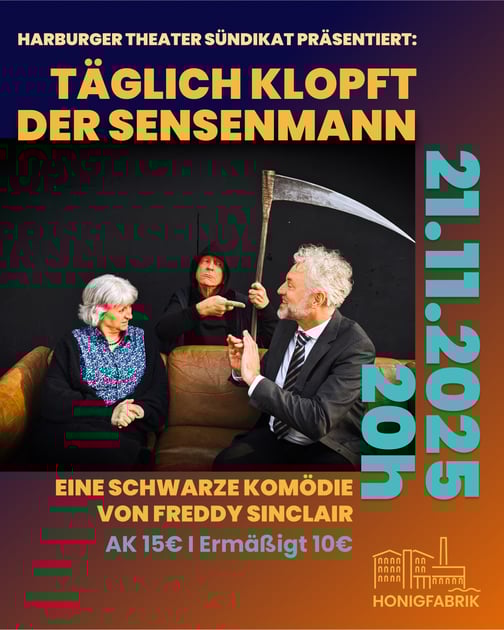 Das Harburger Theater Sündikat spielt „Und täglich klopft der Sensenmann“ von Freddie Sinclair