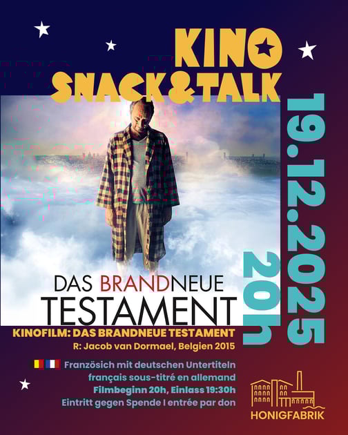 Doch das ist leider nur die eine Seite der Medaille. Denn der Allmächtige (Benoît Poelvoorde) ist kein weiser Weltenlenker, sondern ein Familienvater, der frustriert im Bademantel durch die Wohnung schlurft und Frau (Yolande Moreau) und Tochter Éa (Pili Groyne) tyrannisiert. Ansonsten hockt Gott vor seinem Computer und tüftelt mit diebischer Freude jene dummen, sadistischen Gebote aus, die zu den Fragen führen, die die Menschheit bewegen: Warum fällt der Toast immer auf die Marmeladenseite, und weshalb erwischt man im Supermarkt grundsätzlich die langsamste Schlange an der Kasse? Als wäre das nicht schon schlimm genug, lässt er immer wieder Dampf ab, indem er Naturkatastrophen oder Kriege arrangiert. Das will Éa nicht länger mit ansehen, sie hackt sich in Gottes Computer ein und schickt jedem Menschen eine SMS mit dem jeweiligen Todesdatum. Diese schockierende Botschaft nehmen manche besser auf als andere und plötzlich denken alle Menschen darüber nach, was sie mit der ihnen verbleibenden Zeit anfangen wollen. Éa bricht fluchtartig auf, um auf der Erde sechs neue Apostel zu suchen und ein brandneues Testament zu schreiben. Doch Gott ist der Meinung, dass er inmitten des ganzen Chaos auch noch ein gewaltiges Wort mitzureden hat…