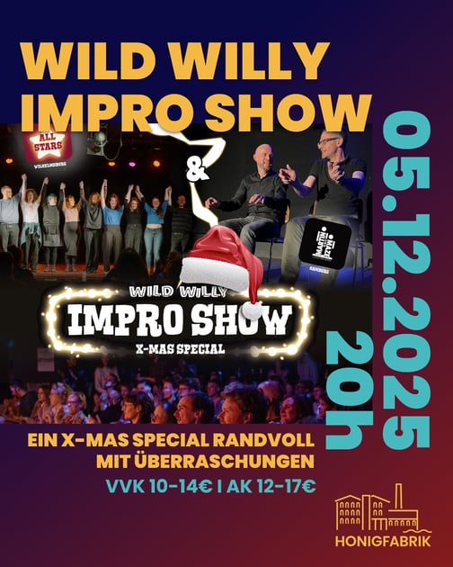 Wild Willy lädt ein zu einem besonderen Improtheater-Abend voller Überraschungen, Herzensmomenten und schillerndem Humor: