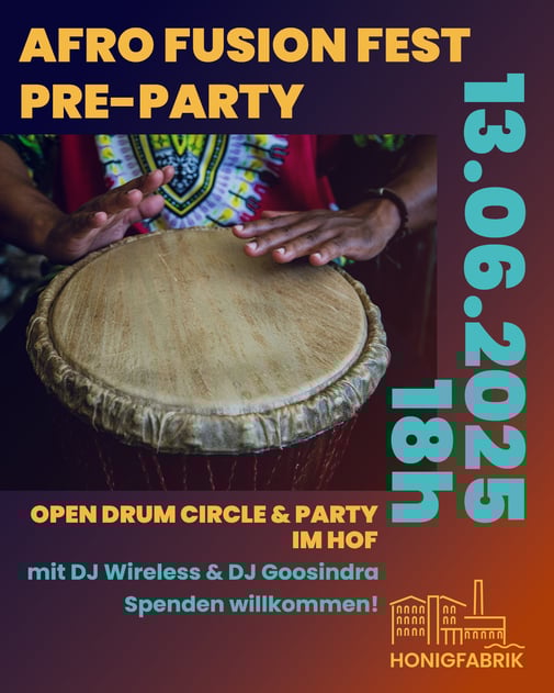 Wir laden euch ein zum Open Air Drum Circle und zur Party mit DJ Wireless & DJ Goosindra. Kommt vorbei, um gemeinsam zu tanzen, zu trommeln und zu genießen. Drinks, Snacks und entspannte Community-Vibes warten auf euch.